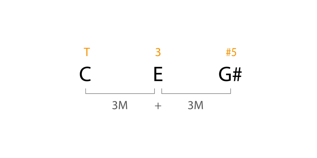 Desde la nota más grave a la más aguda, las notas se llaman: tónica (T), tercera (3), y quinta (5).