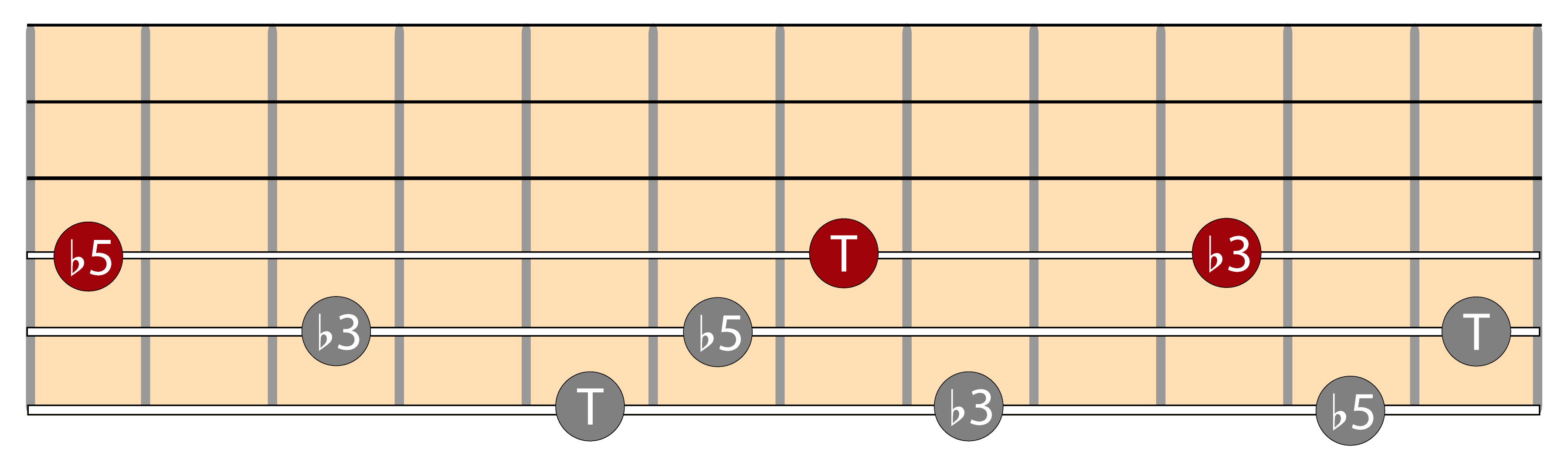 Los diagramas están subdivididos según la cuerda en la cual se encuentra la melodía; recuerda que llamamos “melodía” la nota más aguda del acorde.